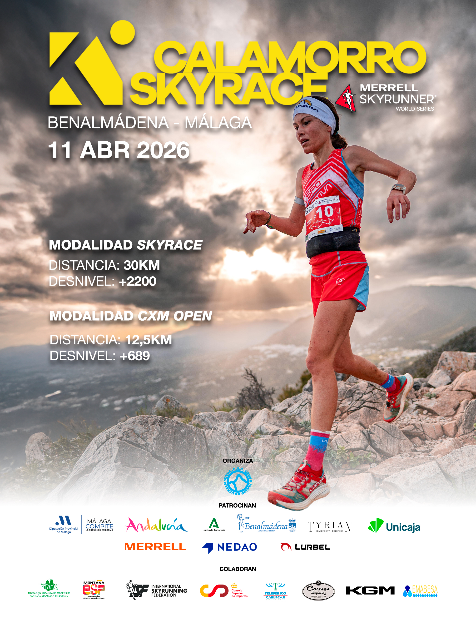 La mítica prueba benalmadense regresa a los mejores escenarios del skyrunning mundial. La Calamorro Skyrace. El próximo sábado 11 de abril se disputará su decimoséptima edición, y formará parte por cuarto año consecutivo del circuito internacional Merrell Skyrunner World Series. La prueba contará con dos modalidades, la modalidad principal, Calamorro Skyrace, ofrece 30 kilómetros y 2.270 metros de desnivel positivo, y la modalidad CxM Open, de 12,5 kilómetros y 689 metros de desnivel positivo